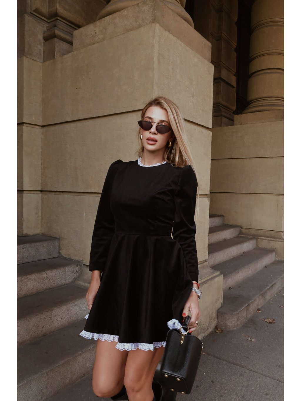 Step into sleek sophistication with our black long sleeve mini dress, a garment that effortlessly marries timeless style with contemporary flair. This dress is tailored for the fashion-savvy woman who values both simplicity and sophisticated detail in her wardrobe.