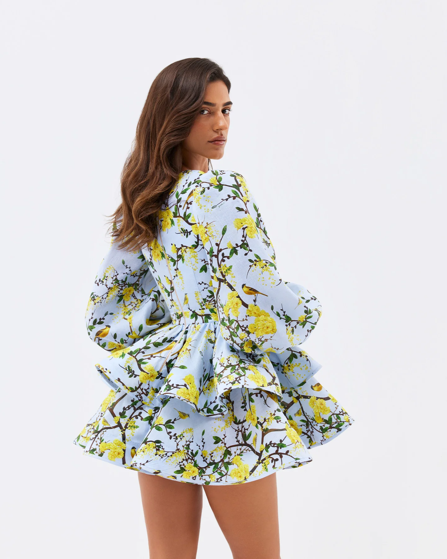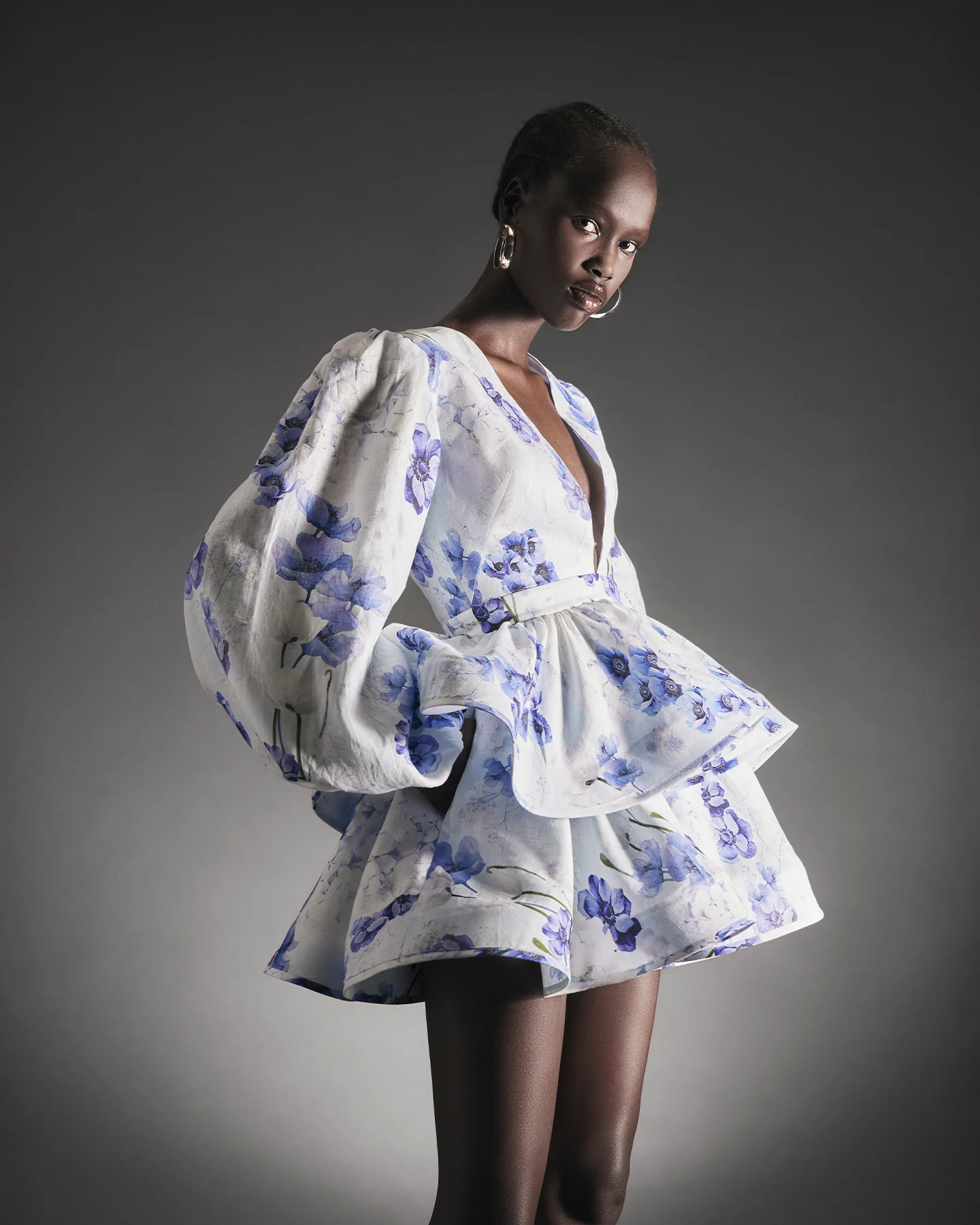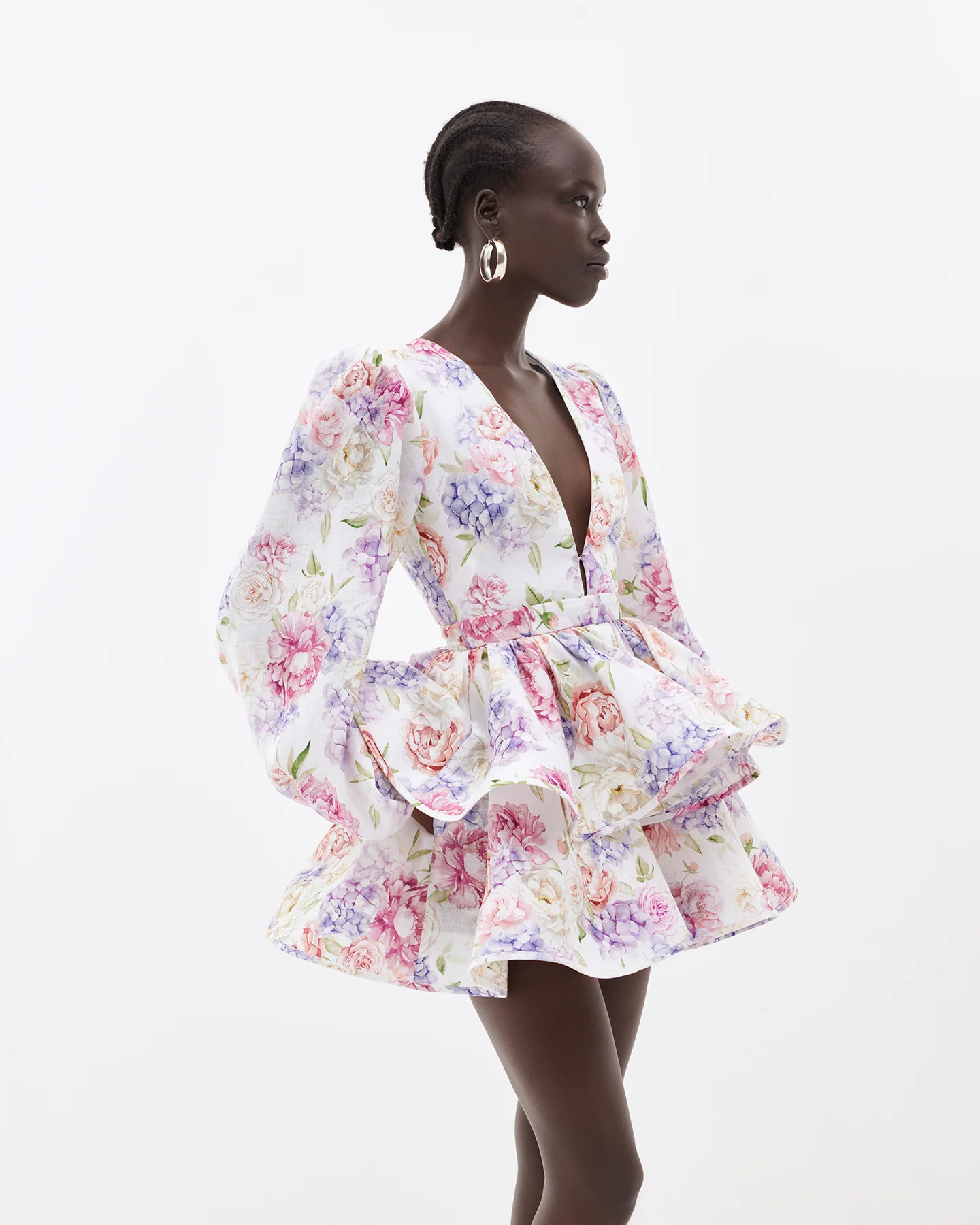 Crafted for those who crave volume, drama, and soft femininity all in one, the Zinnia is a tiered peplum mini dress that captures the essence of springtime celebration. Whether you’re sipping champagne in a sun-drenched garden, dancing barefoot under twinkle lights, or making your arrival at a summer soirée, this dress makes sure you do it beautifully.